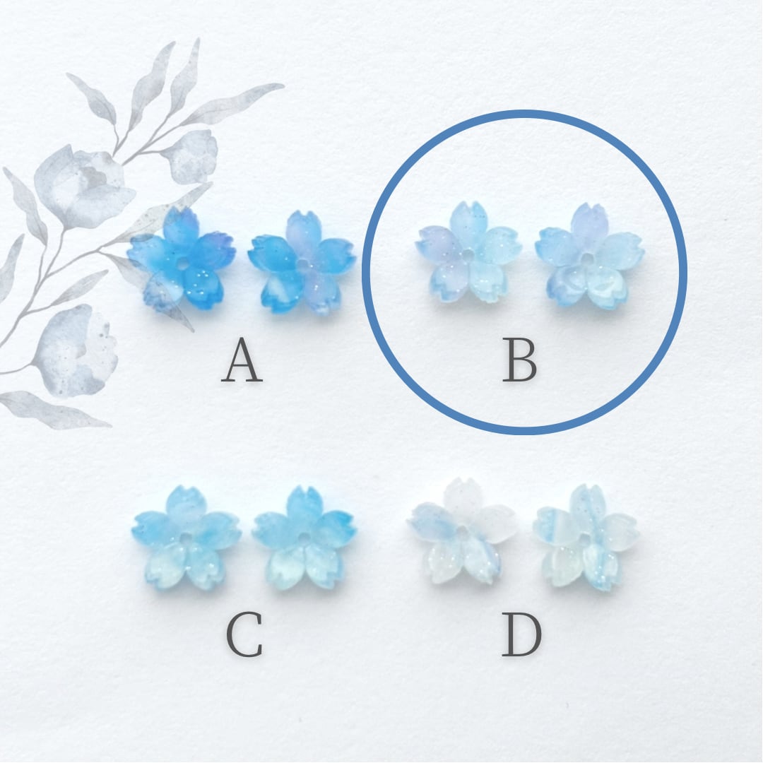 ちいさな桜(ブルー)│ノンホールピアス(樹脂製イヤリング)